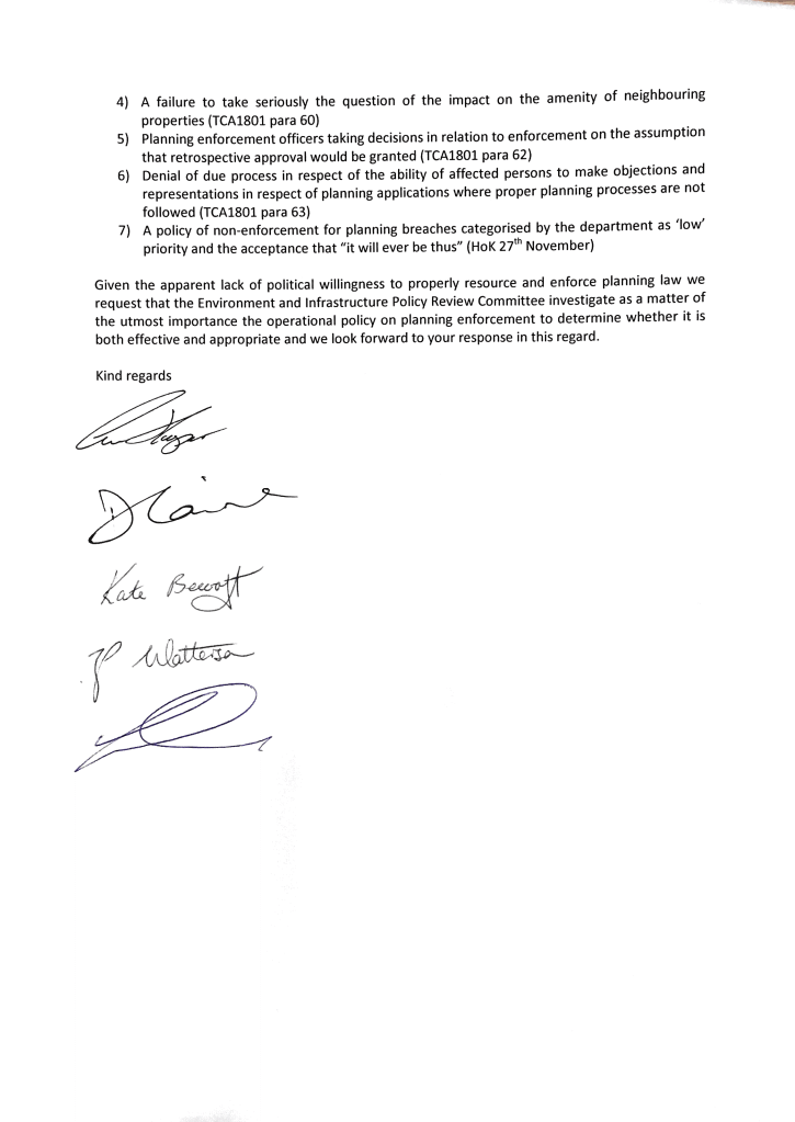 I can only hope that the Committee do the right thing and open an investigation into planning enforcement on the Island as it is something that can affect all of us and our communities.