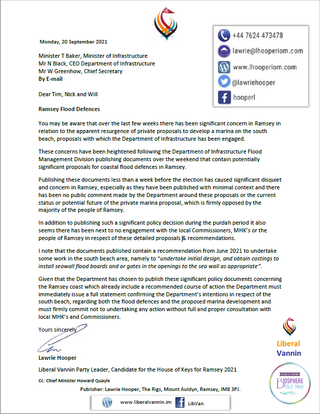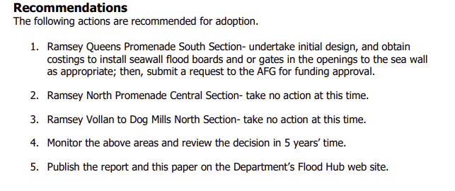 Over the weekend the Department of Infrastructure Flood Management Division published a range of documents in connection with coastal flood defences in Ramsey