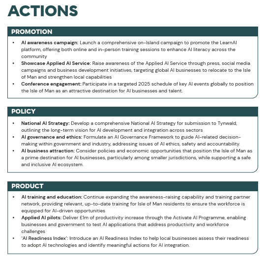 Indeed even the 2024 and 2025 Department for Enterprise Department Plans have actions relating to AI – again basically, “we need a proper AI strategy”:
